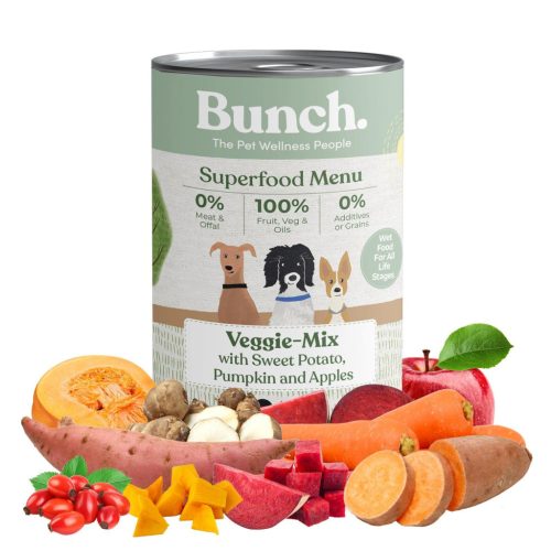 31% édesburgonya, 20% sárgarépa, 20% tök, 10% csicsóka, 10% cékla, 7% alma, 0,5% csipkebogyó, 0,5% algából származó kalcium, 0,5% gyógynövénykeverék (8 összetevő), 0,4% repceolaj (tisztított), 0,1% tengeri moszatliszt.